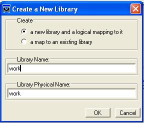 A compilation library is a directory on your disk into which all HDL designs are compiled. You can specify this library through the ModelSim or it can be created using operation system commands. Usual library name is work. Now lets create a directory called work and map the directory to the logical library named work.