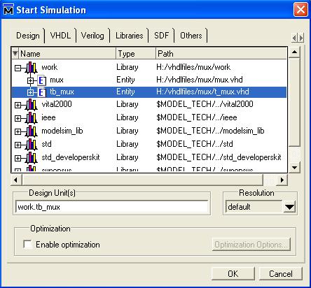 · Specify the compilation library name. A compilation library is a directory on your disk into which all HDL designs are compiled. The default library Name is work. It is better to leave it with default name.